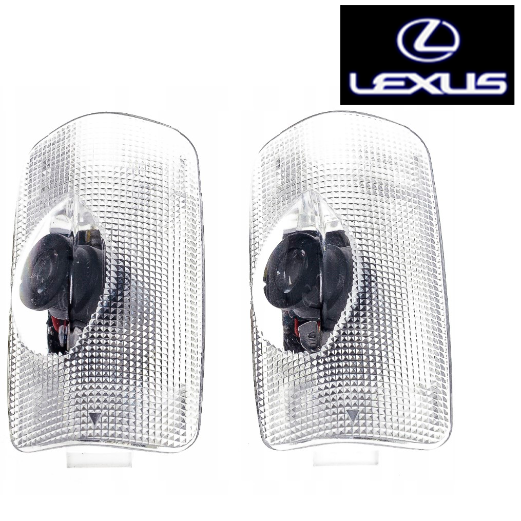 LED дверний проєктор з логотипом для Lexus. Аналог штатного модуля: встановлюється у посадочне місце без доробок, під’єднується до заводської проводки та підсвічує зону посадки під час відкриття дверей, формуючи чітке зображення логотипа.